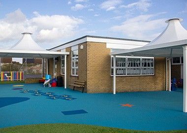 Durable, permanently installed canopies designed for long-term outdoor use in commercial spaces.